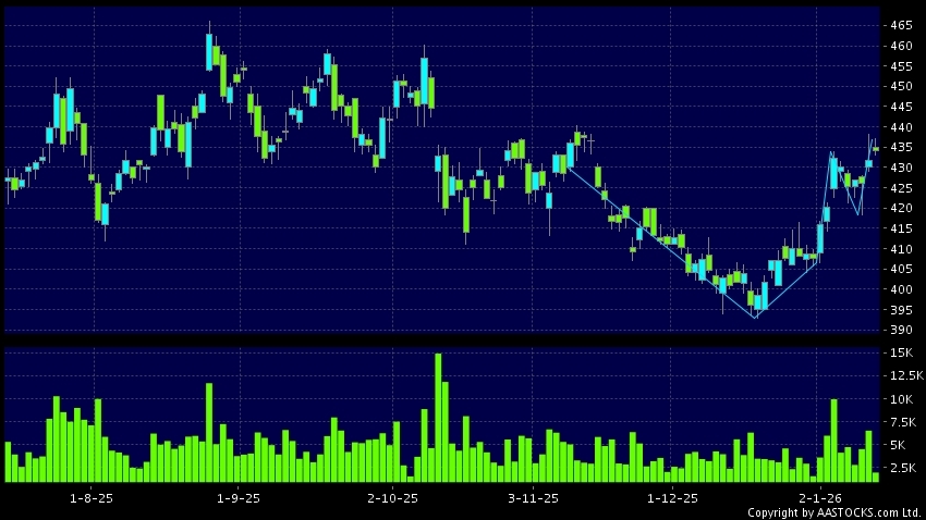 Disclaimer:The information, financial market data, quotes, charts, statistics and / or various technical analysis indicators are automatically generated based on the analyses and interpretations of publicly available information and should be used as references only at your own discretion. Such automatically generated content does not reflect the views or opinions of AASTOCKS.com Limited nor does AASTOCKS.com Limited make any guarantees to their accuracy, completeness, timeliness or correctness. You are advised to consult independent professional advice to verify pricing information or to obtain more detailed market information. Any uses of information or trades executed following the said automatically generated content are taken at your own risk for your own account.