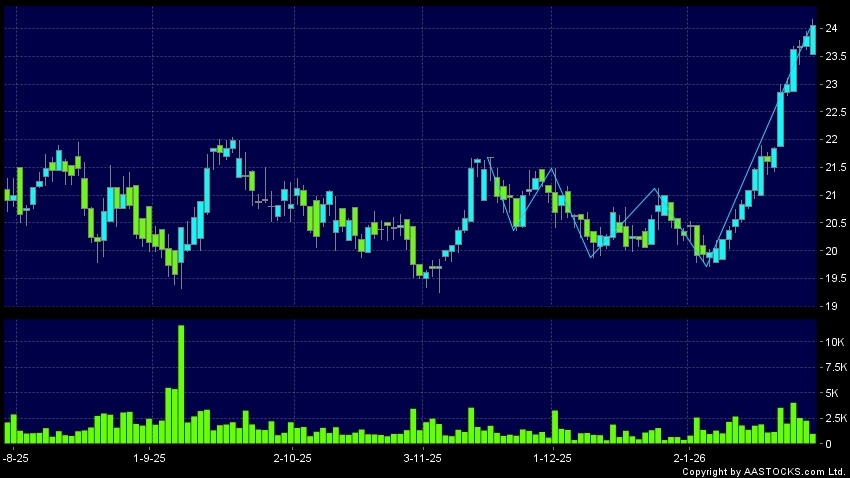 Disclaimer:The information, financial market data, quotes, charts, statistics and / or various technical analysis indicators are automatically generated based on the analyses and interpretations of publicly available information and should be used as references only at your own discretion. Such automatically generated content does not reflect the views or opinions of AASTOCKS.com Limited nor does AASTOCKS.com Limited make any guarantees to their accuracy, completeness, timeliness or correctness. You are advised to consult independent professional advice to verify pricing information or to obtain more detailed market information. Any uses of information or trades executed following the said automatically generated content are taken at your own risk for your own account.