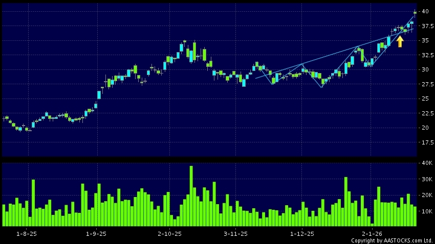 ZHAOJIN MINING(01818.HK) appears an upside breakout, rose above the neckline. Last printed at 39.520; rose 3.510%; on volume of 13.83M shares and turnover of $547.35MRecent Perform...