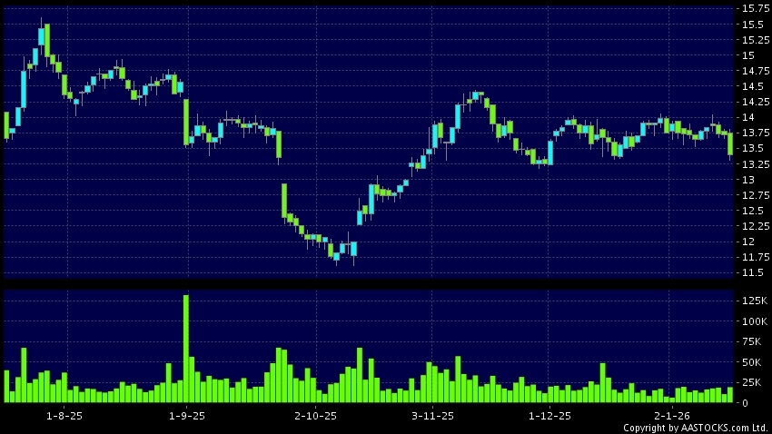Disclaimer:The information, financial market data, quotes, charts, statistics and / or various technical analysis indicators are automatically generated based on the analyses and interpretations of publicly available information and should be used as references only at your own discretion. Such automatically generated content does not reflect the views or opinions of AASTOCKS.com Limited nor does AASTOCKS.com Limited make any guarantees to their accuracy, completeness, timeliness or correctness. You are advised to consult independent professional advice to verify pricing information or to obtain more detailed market information. Any uses of information or trades executed following the said automatically generated content are taken at your own risk for your own account.