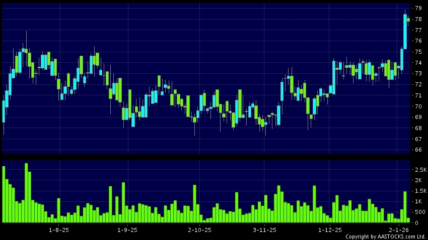Disclaimer:The information, financial market data, quotes, charts, statistics and / or various technical analysis indicators are automatically generated based on the analyses and interpretations of publicly available information and should be used as references only at your own discretion. Such automatically generated content does not reflect the views or opinions of AASTOCKS.com Limited nor does AASTOCKS.com Limited make any guarantees to their accuracy, completeness, timeliness or correctness. You are advised to consult independent professional advice to verify pricing information or to obtain more detailed market information. Any uses of information or trades executed following the said automatically generated content are taken at your own risk for your own account.