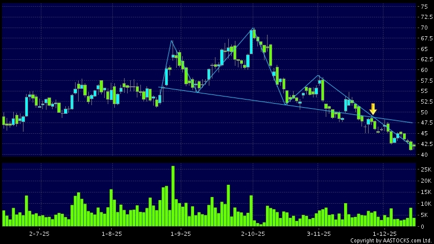 Head Shoulders top is a typical bearish signal, when stock price breaks the supportive level, downtrend would possibly start.(HK stocks quote is delayed for at least 15 mins.Short Selling Data as at 2025-12-12 16:25.)