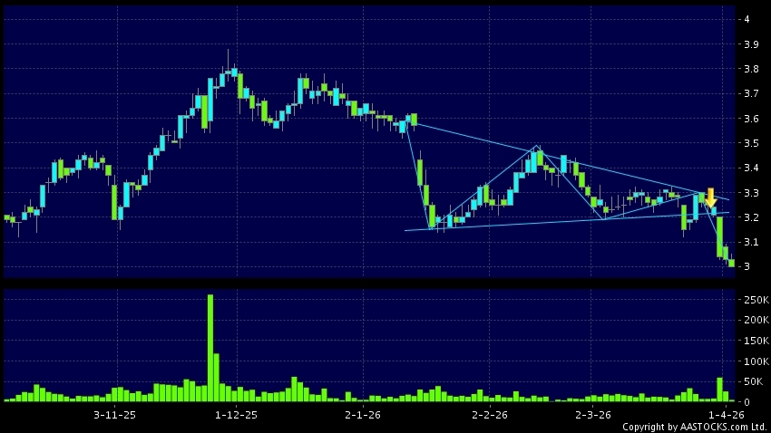 Triangle Breakout means the volatility of price movement is decreasing, stock price finally broke the bottom of triangle. A downward trend will start.(HK stocks quote is delayed for at least 15 mins.Short Selling Data as at 2026-04-02 12:25.)