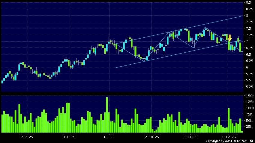 区域突破指股价在过去的一段时间只在一个范围在内活动,然後股价下跌作出突破,跌穿区域的底部,技术走势偏软。(港股报价延迟最少十五分钟。沽空资料截至 2025-12-12 16:25。)