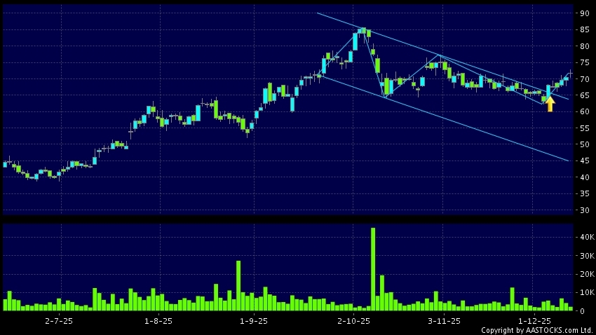 区域突破指股价在过去的一段时间只在一个范围在内活动,然後股价上升作出突破,升穿区域的顶部,技术走势向好。(港股报价延迟最少十五分钟。沽空资料截至 2025-12-12 16:25。)