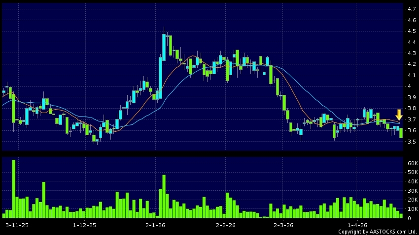 死亡交叉是一个利淡信号,指股价的短期移动平均线跌穿长期移动平均线,例如50天线跌穿250天线,在图表上构成交叉的形状。股价通常会下跌形成一个下降趋势,技术走势偏软。(港股报价延迟最少十五分钟。沽空资料截至 2026-04-24 16:25。)