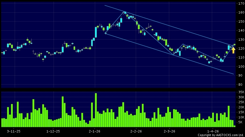 区域突破指股价在过去的一段时间只在一个范围在内活动,然後股价上升作出突破,升穿区域的顶部,技术走势向好。(港股报价延迟最少十五分钟。沽空资料截至 2026-04-21 16:25。)