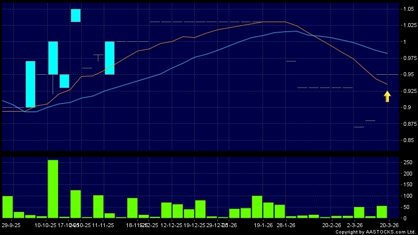 天安卓健(00383.HK) 0.000 (0.000%) 10天移動平均線升穿20天移動平均線,出現黃金交叉。現價報0.950,無升跌,成交量0.00股,成交額0.00。