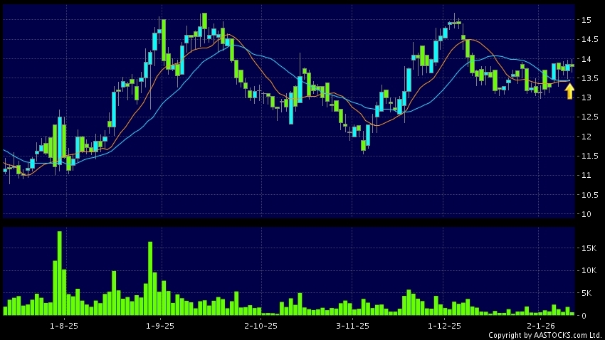 H&H國際控股(01112.HK) +0.830 (+6.278%) 沽空 $1.28千萬; 比率 10.486% 10天移動平均線升穿20天移動平均線,出現黃金交叉。現價報13.790,下跌0.433%,成交量72.00萬股,成交額9.93百萬。