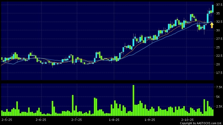 津上機床中國(01651.HK) +2.540 (+7.236%) 沽空 $3.35百萬; 比率 2.762% 10天移動平均線升穿20天移動平均線,出現黃金交叉。現價報37.480,上升6.781%,成交量1.73百萬股,成交額6.29千萬。