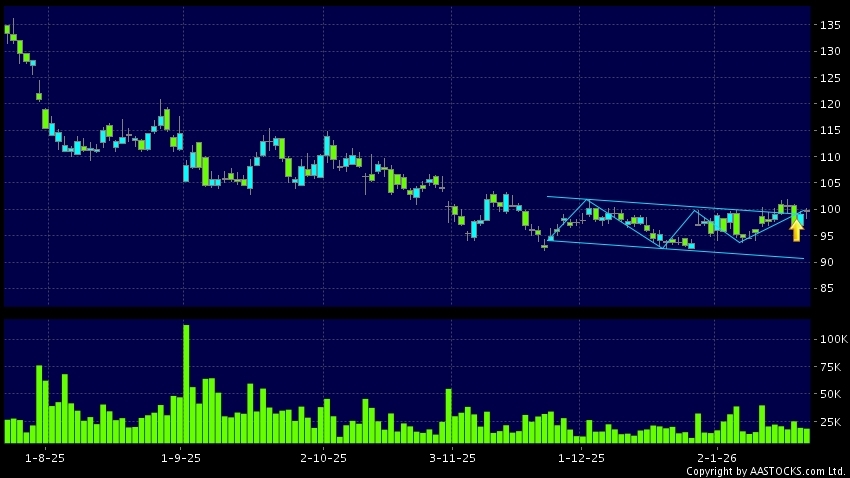 區域突破指股價在過去的一段時間只在一個範圍在內活動,然後股價上升作出突破,升穿區域的頂部,技術走勢向好。(港股報價延遲最少十五分鐘。沽空資料截至 2026-01-22 16:25。)